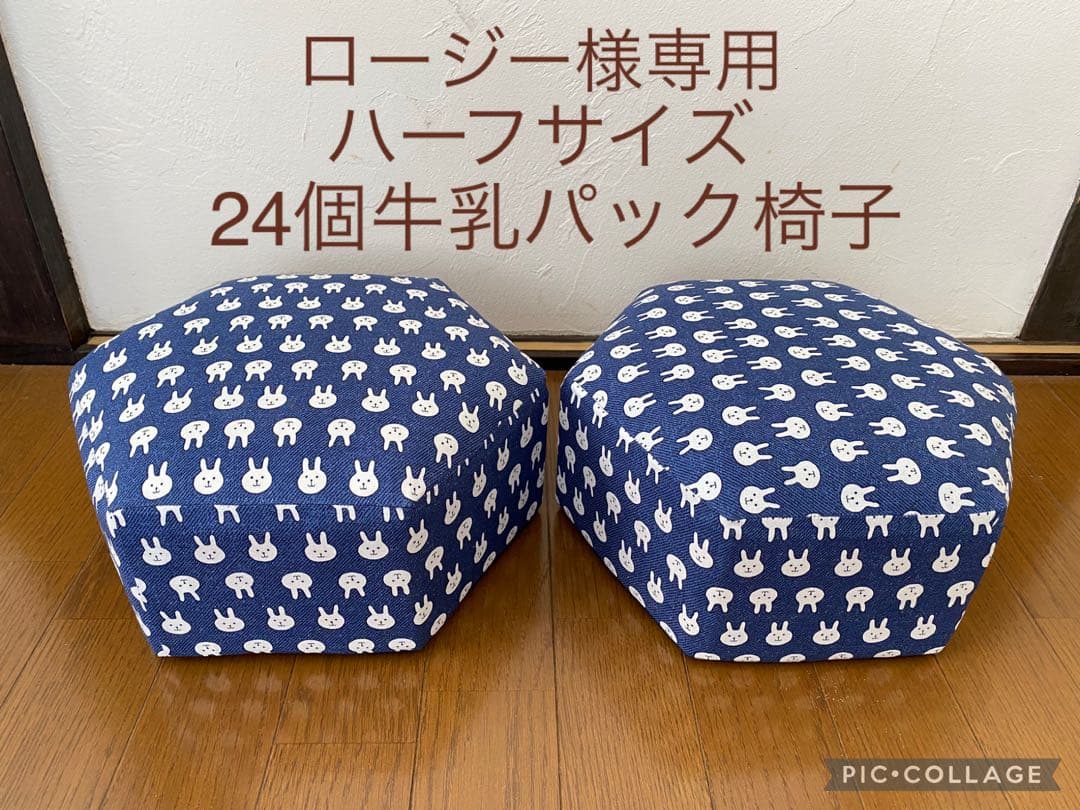専用 ハーフサイズ 24個牛乳パック椅子 2個 うさぎ柄 デニム調 椅子 チェア ・スツール。