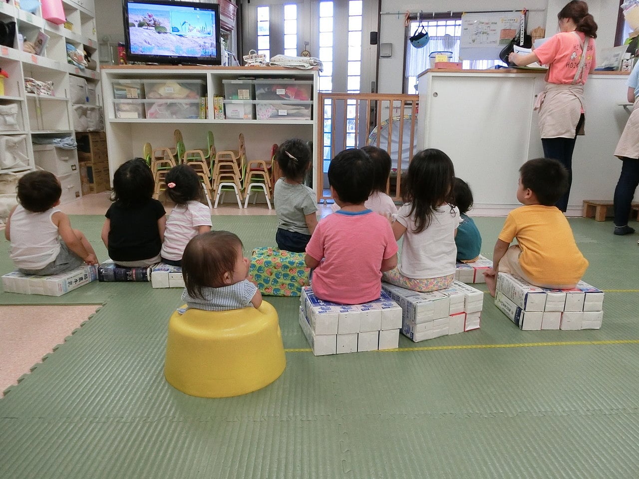 1歳6か月 牛乳パック椅子いっぱいあそぼう。