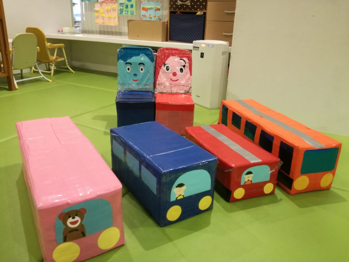 広島の美容室Ruthグループ 子ども達に大人気!牛乳パックでスタッフ手作りの椅子。