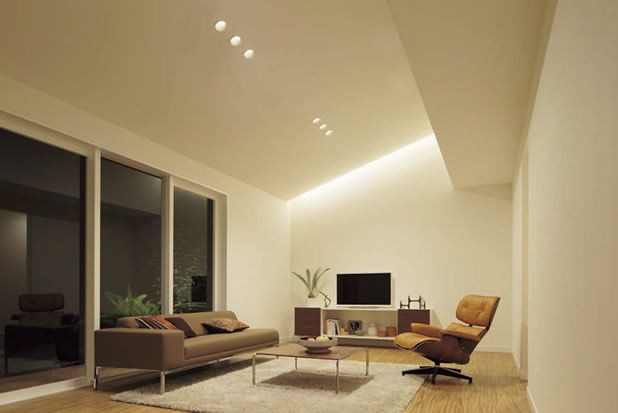 すまいのあかり設計集<事例編>:住宅 部位別事例「リビング」 住宅用照明器具Panasonic。