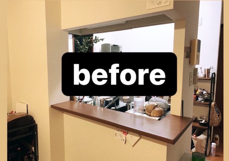 賃貸インテリア 壁付けキッチンを快適に!目隠しカウンター設置いつものくらし時々山。