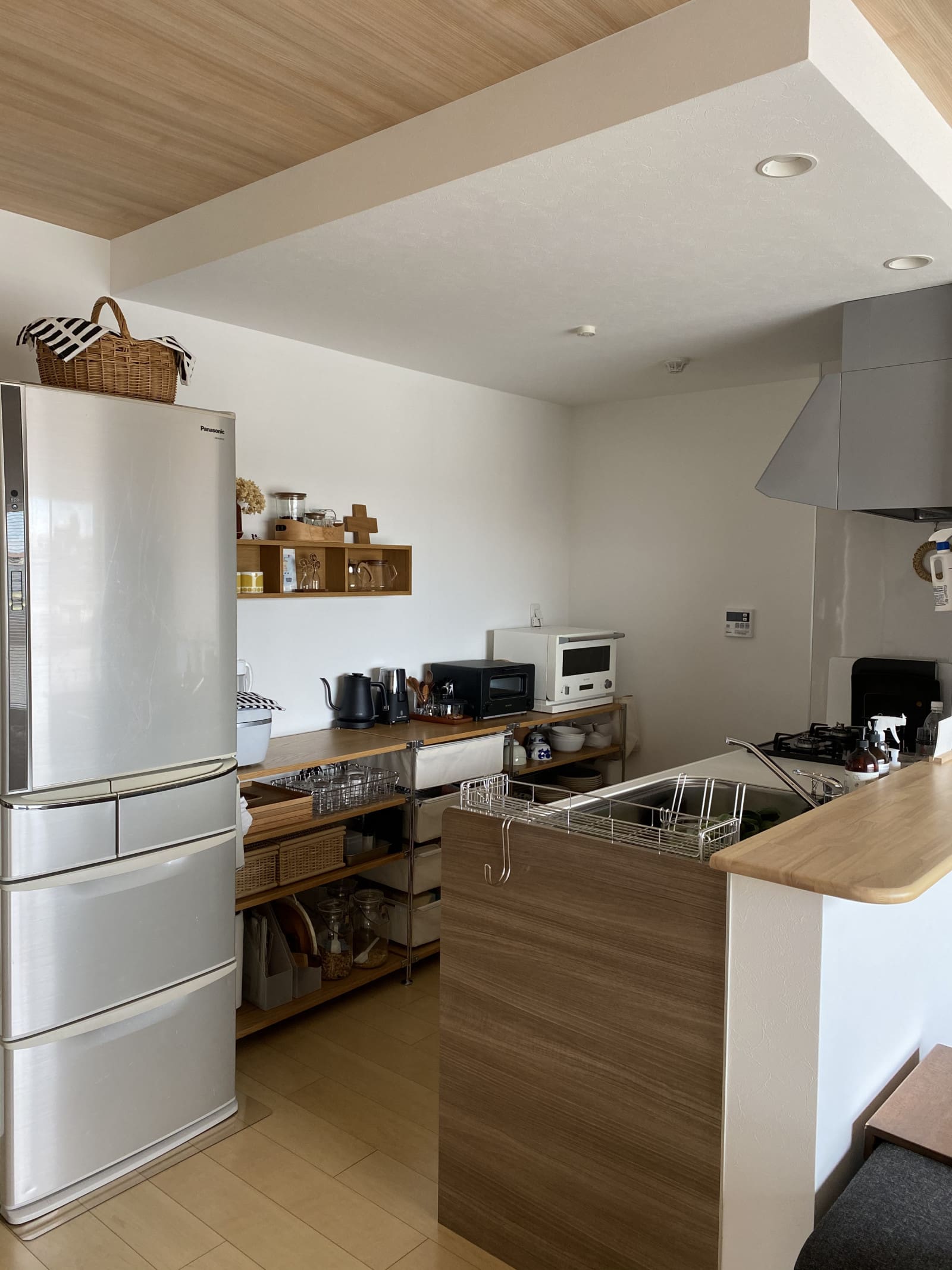 賃貸でも大丈夫!おしゃれな手作りカウンターキッチンで収納力アップ。