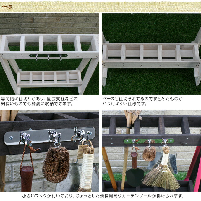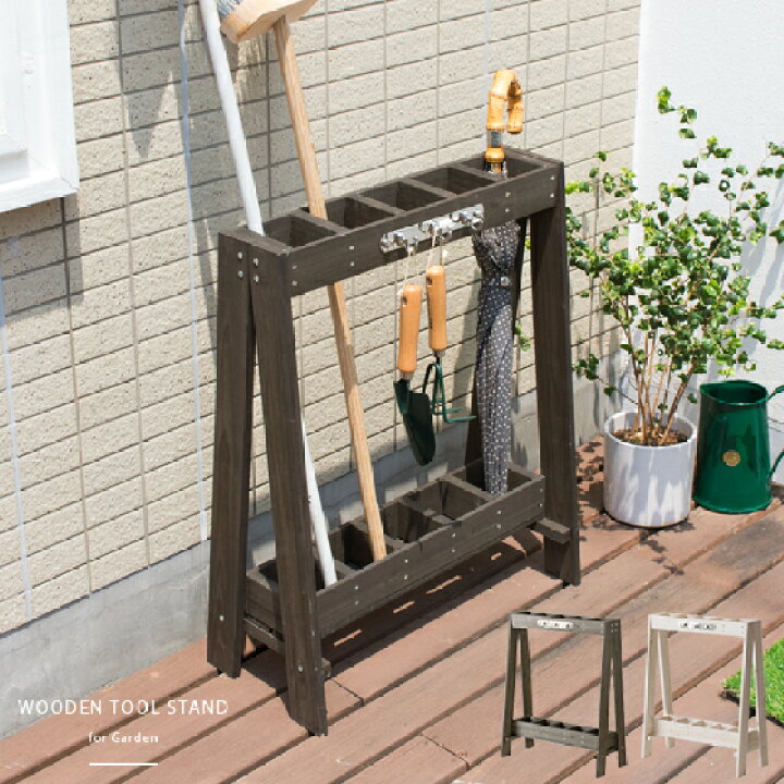 楽天市場 木製用具置き ウッドツールスタンド 整理 屋外 掃除用具 片づけ 収納 らくらく 便利 ガーデン用具 ガーデニング 玄関 外 ベランダバルコニー ひとまとめ送料無料: Nester ネスター。