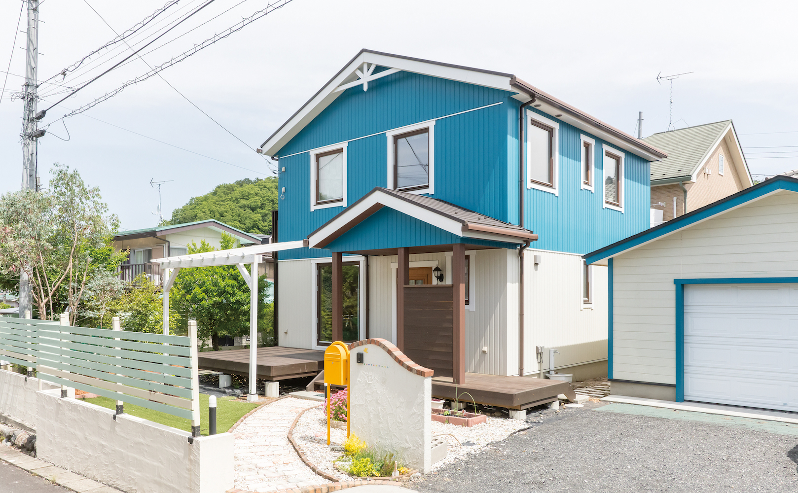 スウェーデンハウス 富山まちなかモデルハウスOPENしました!ミルキーブルーとホワイトの外壁に貼り分けた爽やかな外観!実際の暮らしがイメージできる等身大のモデルハウスです。 スウェーデンハウス。
