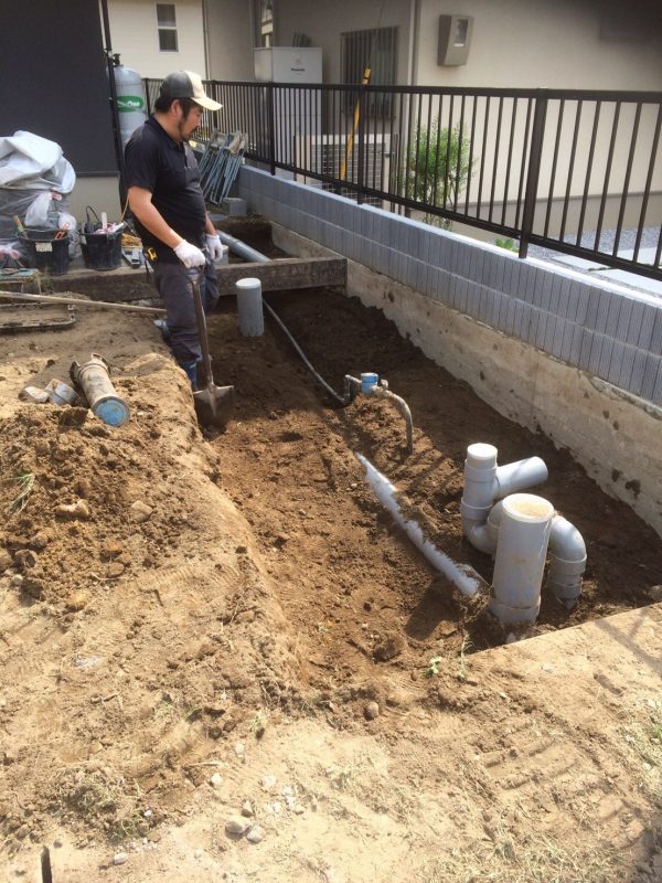 立水栓新設のための水道管延長泉区外構工事HealTheGardenブログ。
