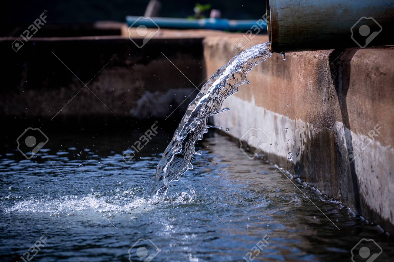 大きな水道管は、屋外のセメントプールに水を埋めるの写真素材・画像素材 Image 138076556。