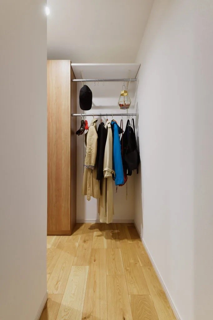 廊下の一角にコート掛け 日当たりの良いLDKを実現した回遊動線で家事楽な家- 収納事例SUVACO スバコ。