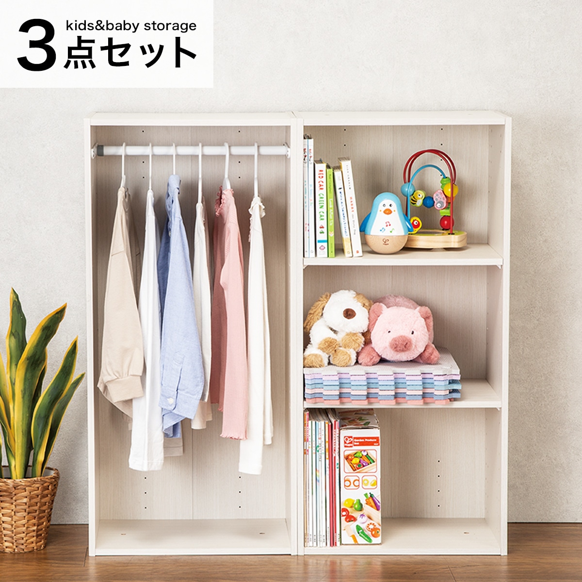 ハンガーポール付き キッズ・ベビー収納 カラーボックスNカラボワイドサイズ ホワイトウォッシュニトリネット 公式家具・インテリア通販。