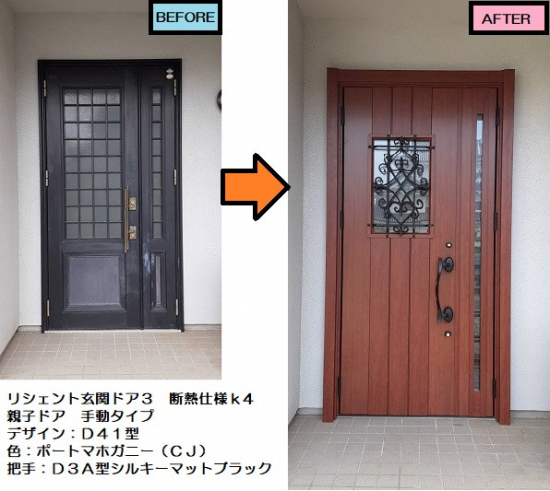 玄関ドアリフォームの施工事例-リフォーム専門店ニッカホーム。