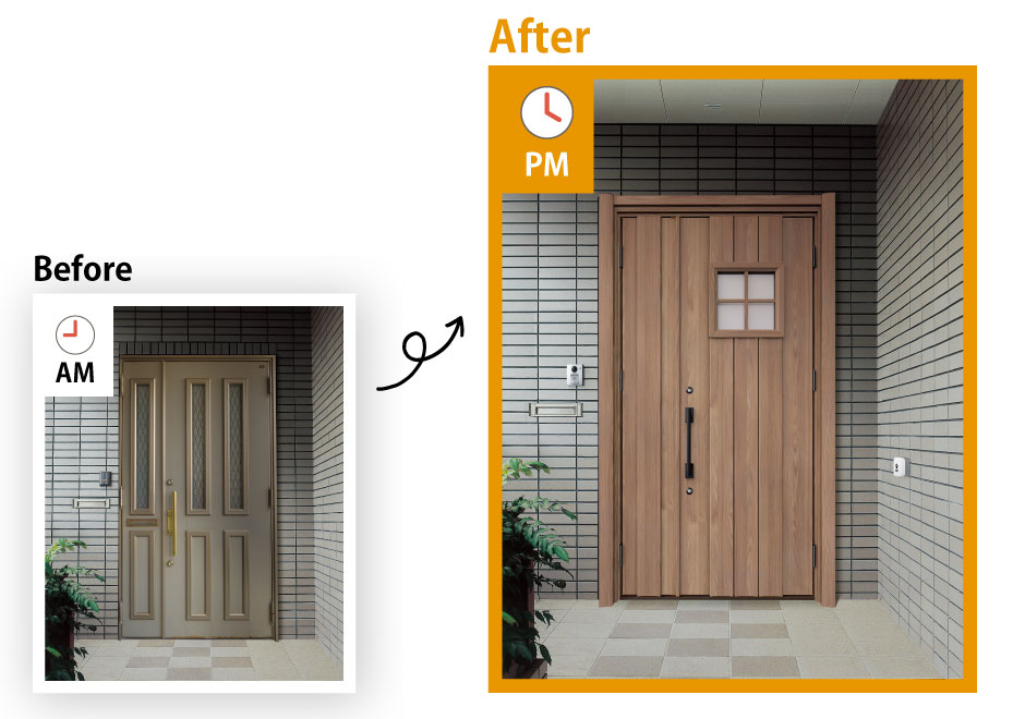 LIXIL玄関ドアを1日でリフォーム。