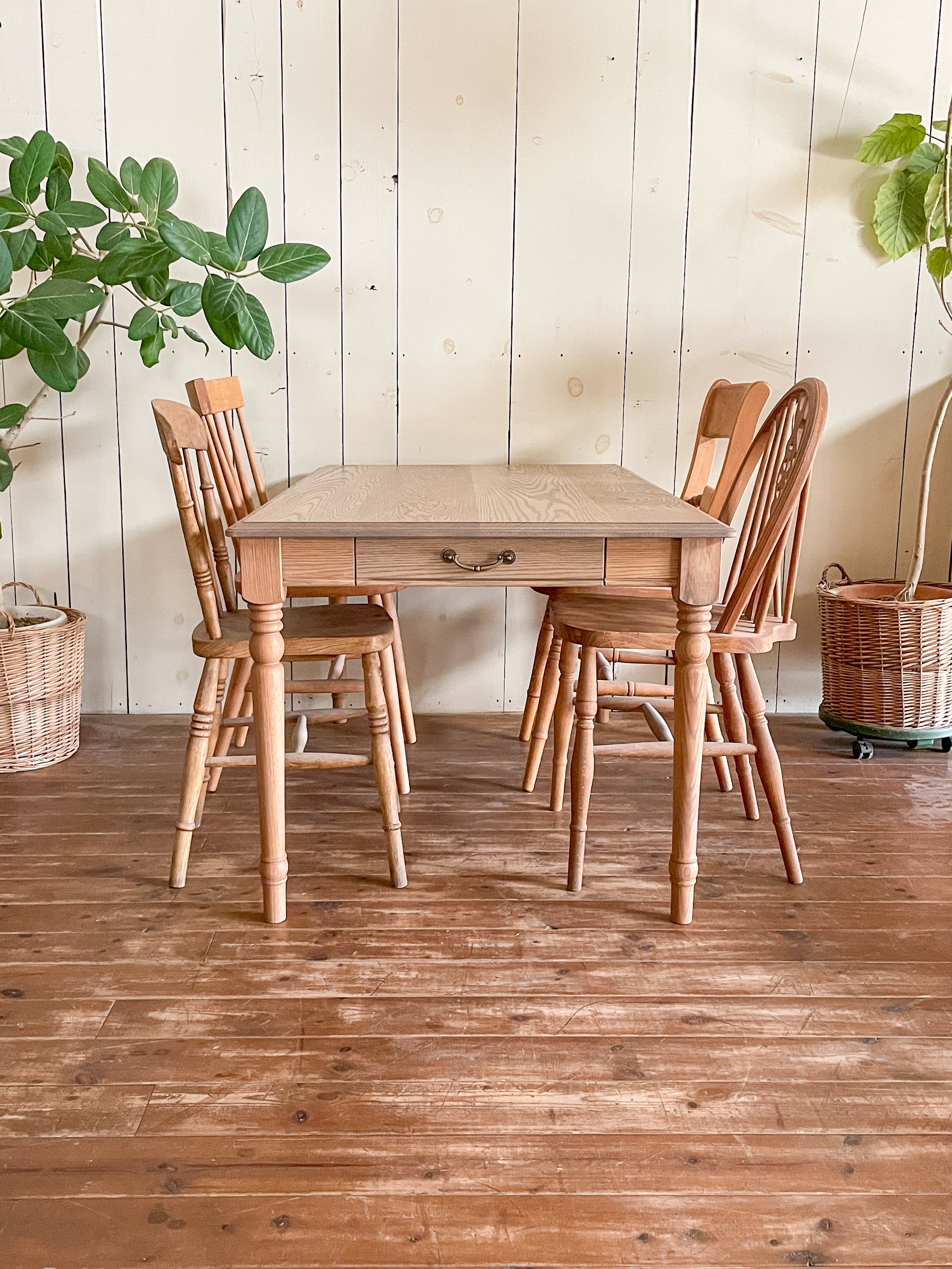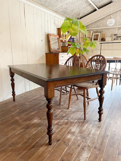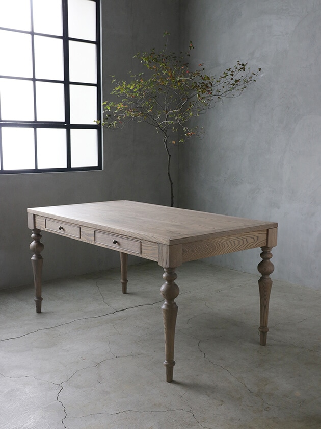 レッドオークターンドレッグダイニングテーブル “スリム” アンティーク調ろくろ足テーブルW1400〜2400 4〜8人掛け グレイッシュグレイスファニチャーBASE店 大阪東京名古屋のオーダーメイド家具店舗什器の専門店。