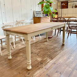 料理教室や飲食店向け、W2800mm幅の大きなアンティーク調ダイニングテーブル@大阪東京。