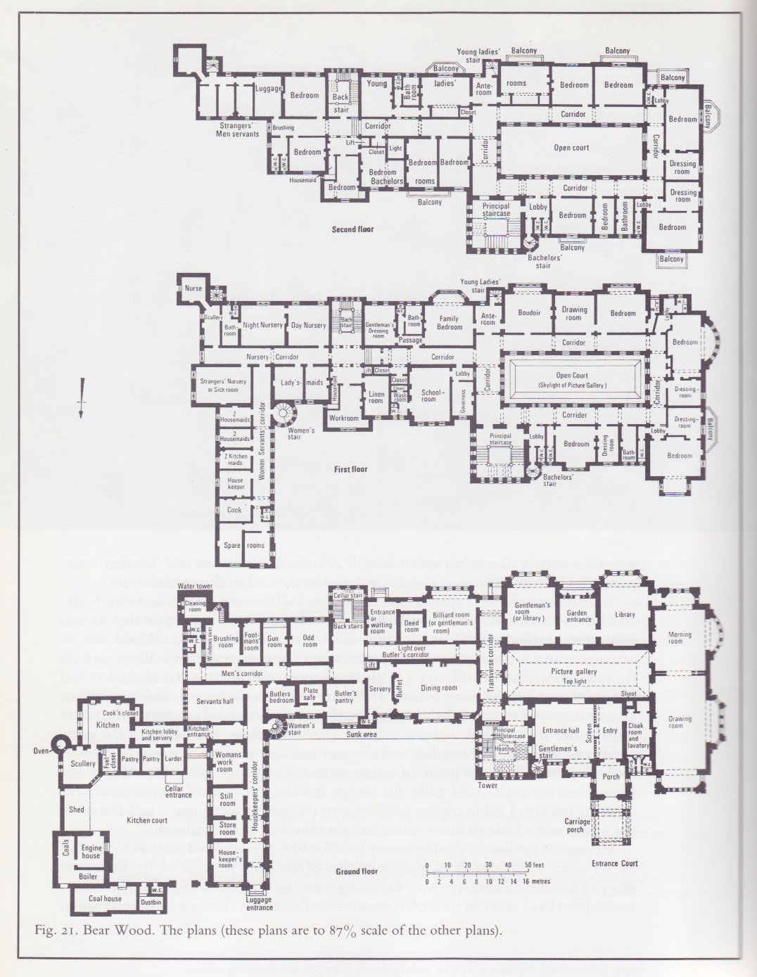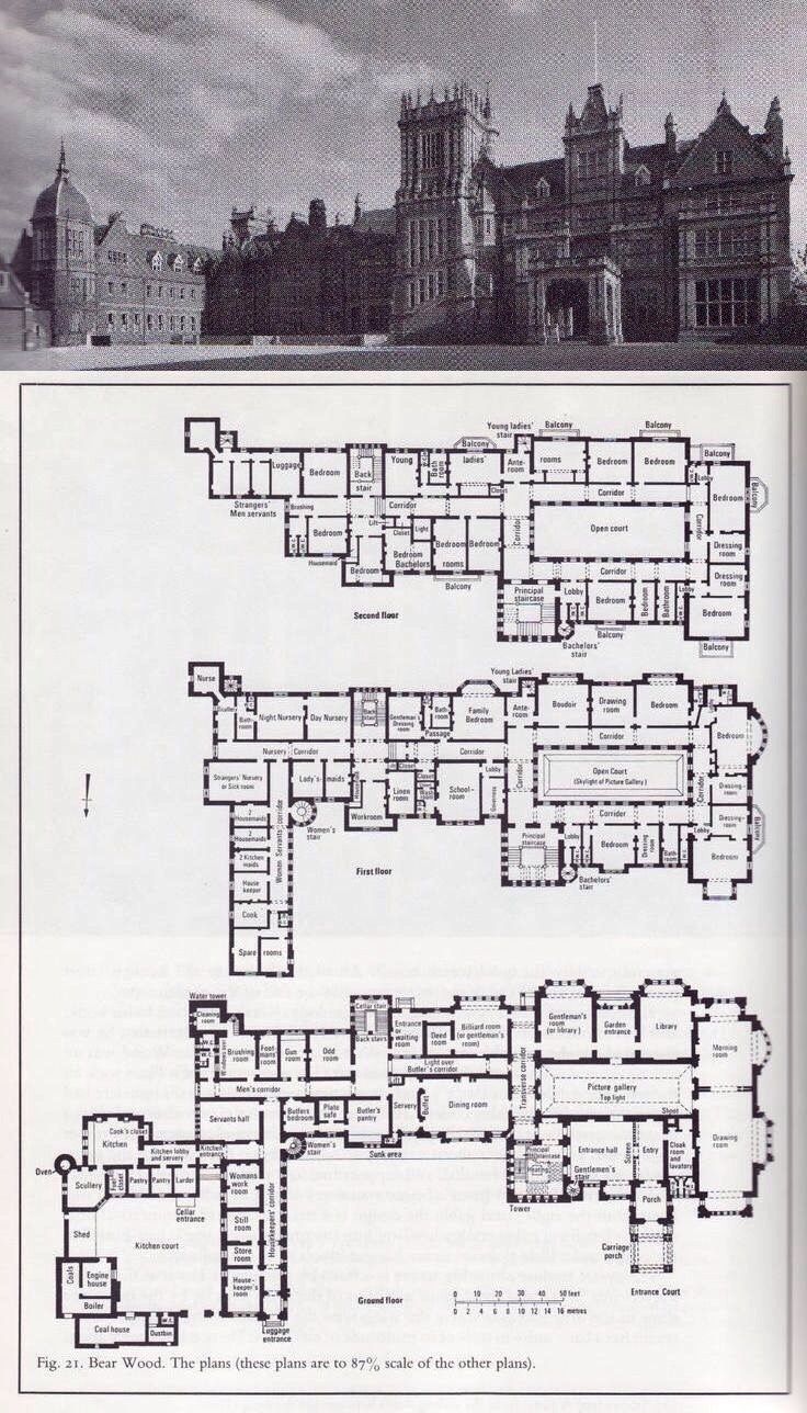 ゴシック・リバイバル様式の、制作途中の架空の大邸宅の間取り図 : r floorplan。