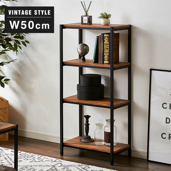 10 9 1:59まで300円OFFクーポン ヴィンテージ 四段ラック 4段 ラック 幅50 奥行き30 収納 オープンラック スチールラック 茶ブラウン シェルフ 木目調 おしゃれ 棚 本棚 代引不可送料無料リコメン堂インテリア館。