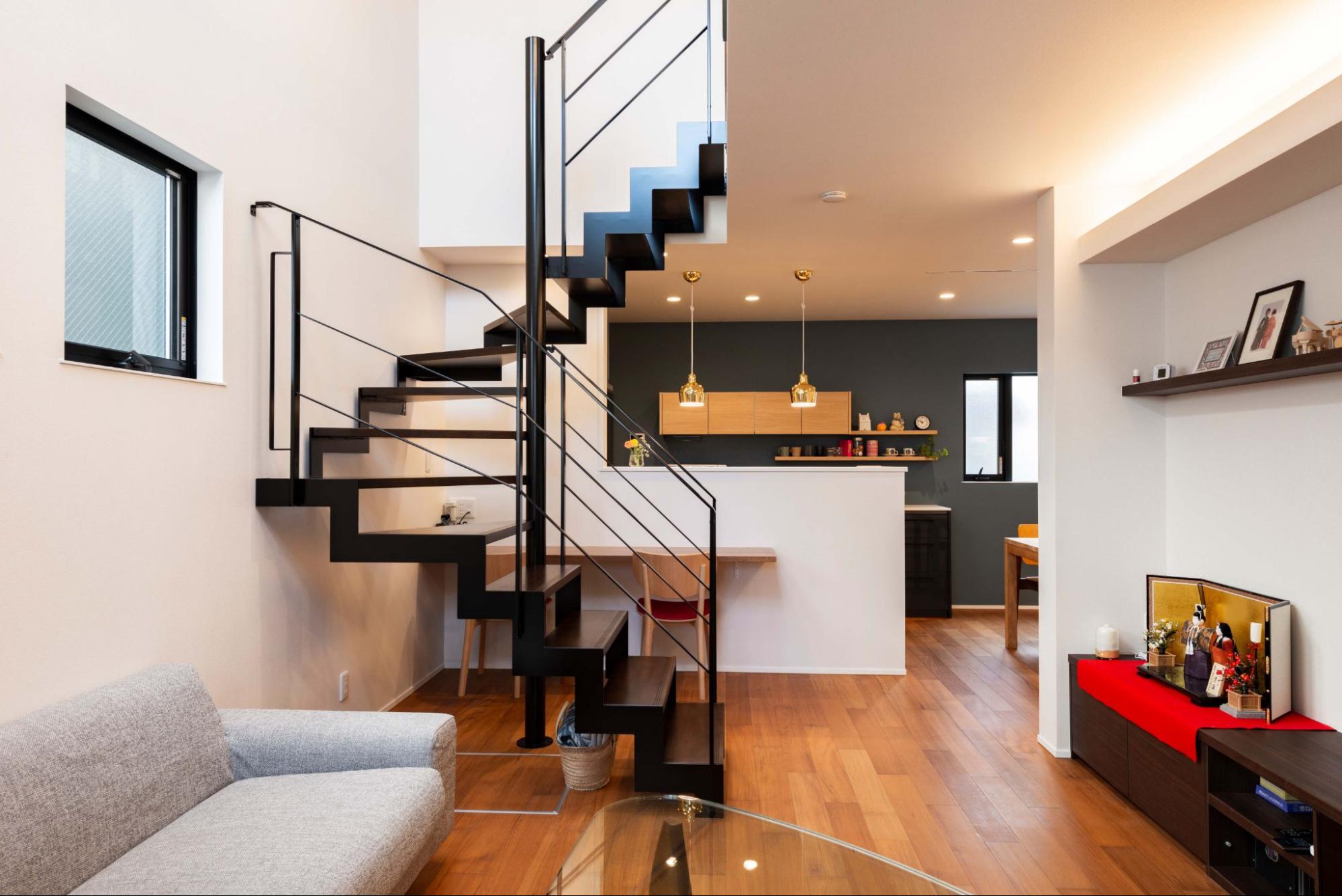 階段はただ歩くだけの廊下ではなく、 大切なインテリアの一部です。 アイアンのオープン階段や螺旋階段、 折り返し階段など、様々なデザインを選択することができます。 家族で過ごすことが多いLDKは インテリアのコーディネートもこだわりたいところですね。 階段は。