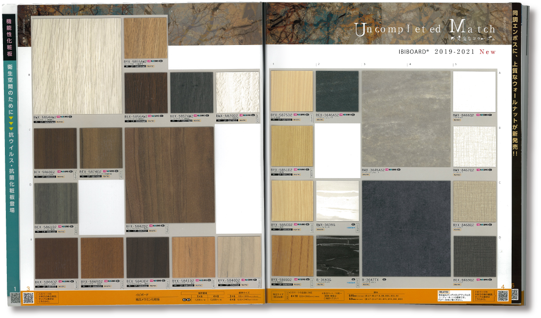 見本帳・カタログ一覧化粧板・メラミン化粧板はイビケン建装事業部へ。