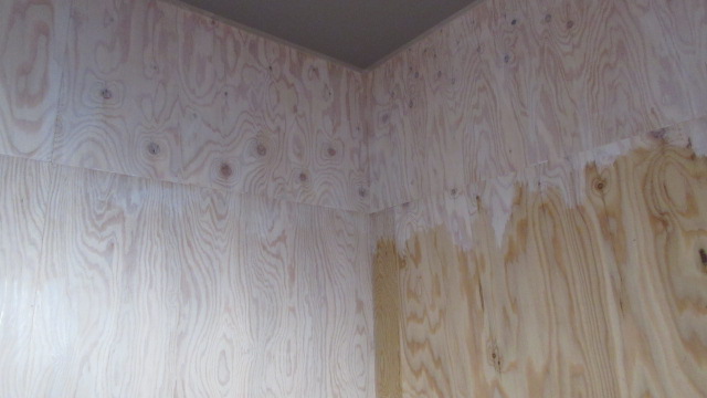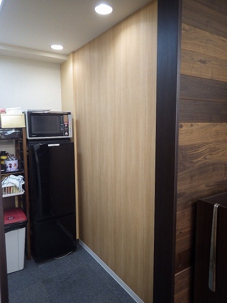 オフィスリノベーション21合板の木の壁を塗装!水性オイルステイン&2液性ウレタンニス ★ Office Renovation ProjectDIY × PRO 山本紙業オフィスリノベ。
