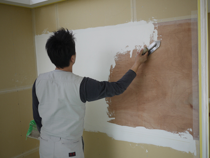 PEKI produced by 近畿壁材コンパネ 合板 下地に漆喰を塗る方法。