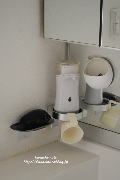 ハンドソープを浮かせて洗面台をスッキリ。拭き掃除も楽に。電動タイプも浮かしに成功。│Keiのブログ。