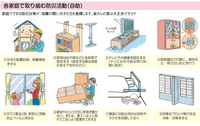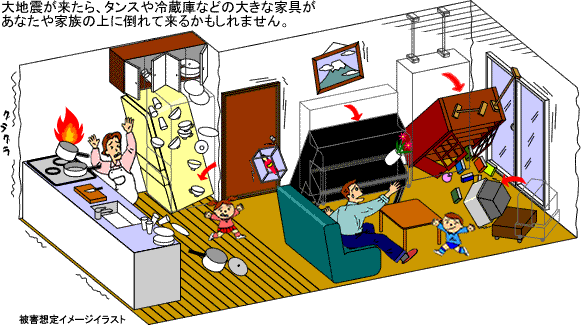 特集 地震発生! あなたの住まいは大丈夫? 耐震補強、家具転倒防止震災の備えは住居から! : 防災情報のページ - 内閣府。