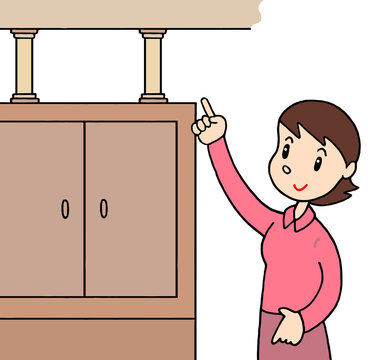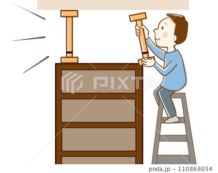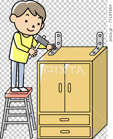家具に転倒防止金具を取り付ける男性のイラスト素材77185664- PIXTA。