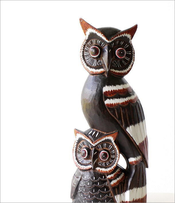フクロウ 置物 木製 玄関 インテリア 可愛い ふくろう 雑貨 鳥 梟 ミミズク 置き物 オブジェ おしゃれ エスニック アジアン雑貨 幅20高さ46 木彫りのオブジェ みみずく親子の通販はau PAY マーケット - ギギlivingau PAY マーケット-通販サイト。