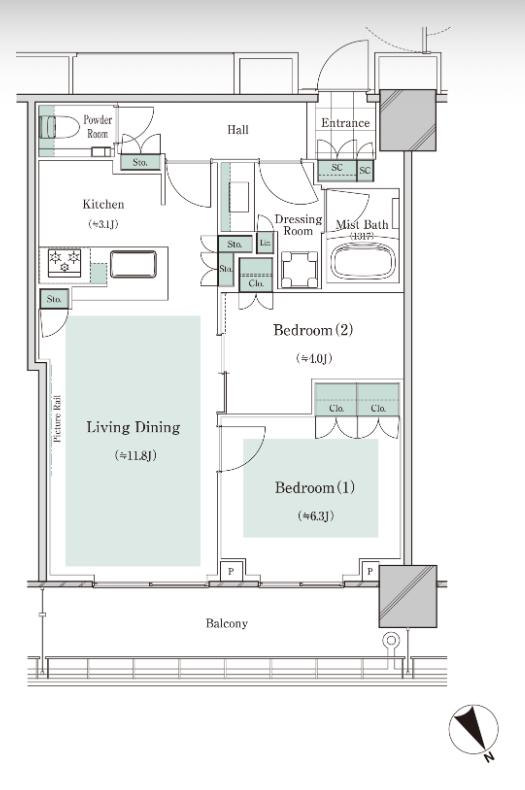 成約済み ザ・タワー十条 813号室 2LDK 8階 73.2㎡おとり物件なしのエアドア。