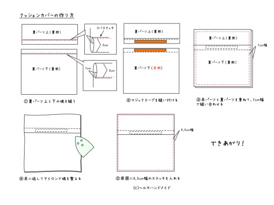 無料型紙 クッションカバー ファスナーなし の作り方ヘルカハンドメイド。