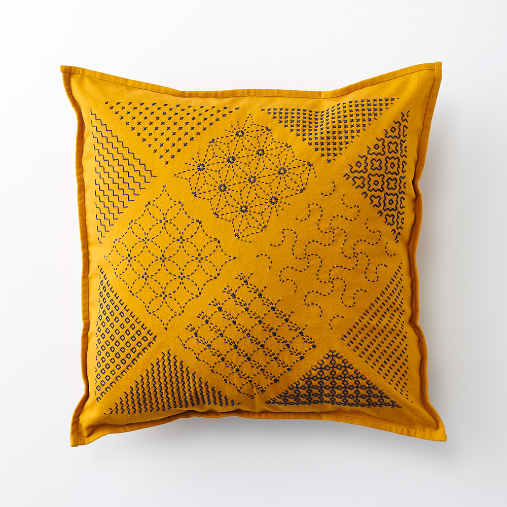 季節の刺し子 むじな菊のクッションカバー手作りレシピクロバー株式会社。