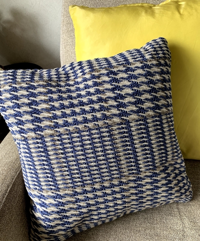 無印良品のクッションカバーを編み物風にリメイクしてみました。海と糸。