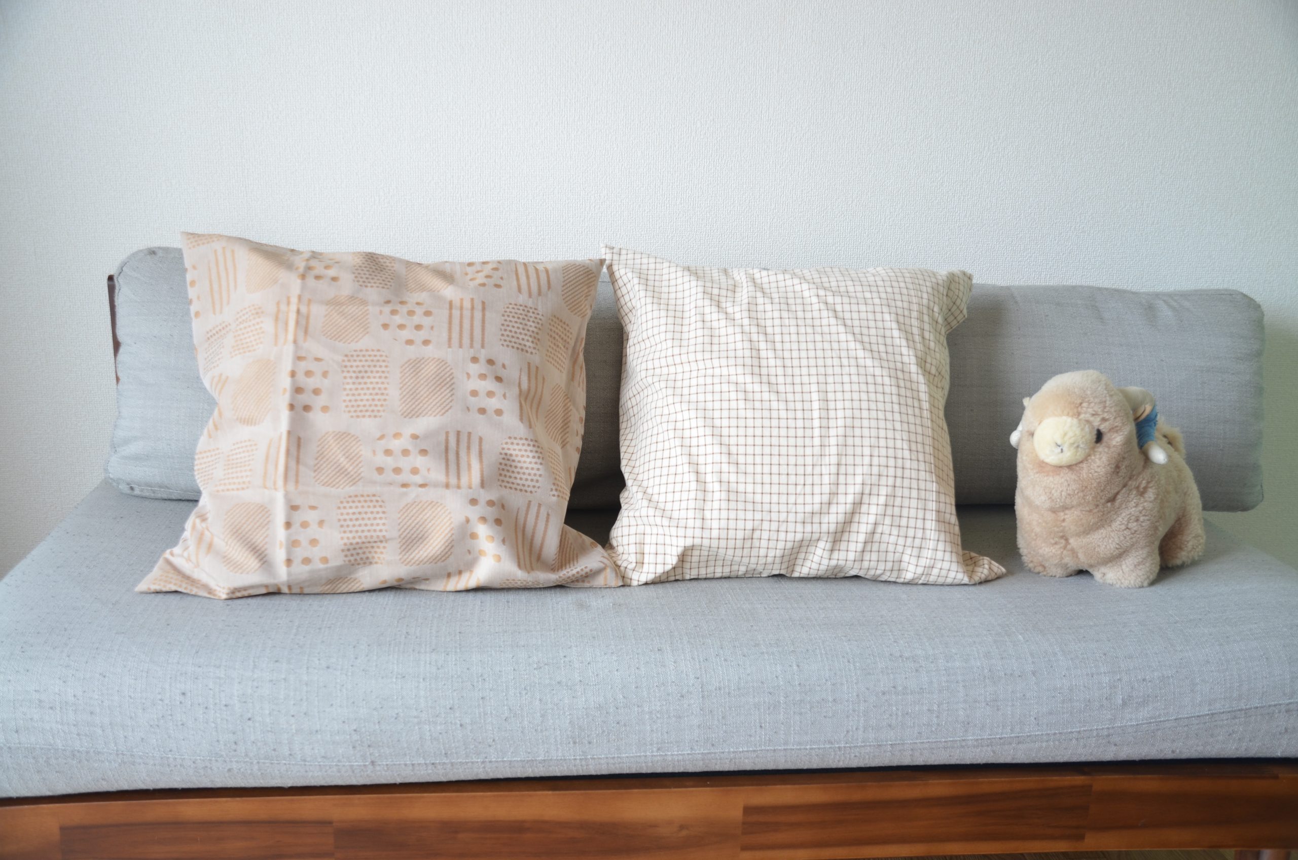 簡単クッションカバーの作り方 ファスナーなし ロックミシンなし ニトリクッション。