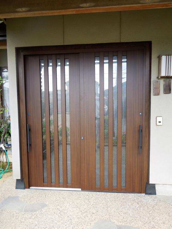 新見市 4枚建ての玄関引き戸を断熱性能向上リフォーム!真庭市住宅リフォーム・リノベーション専門のLIXILリフォームショップ。