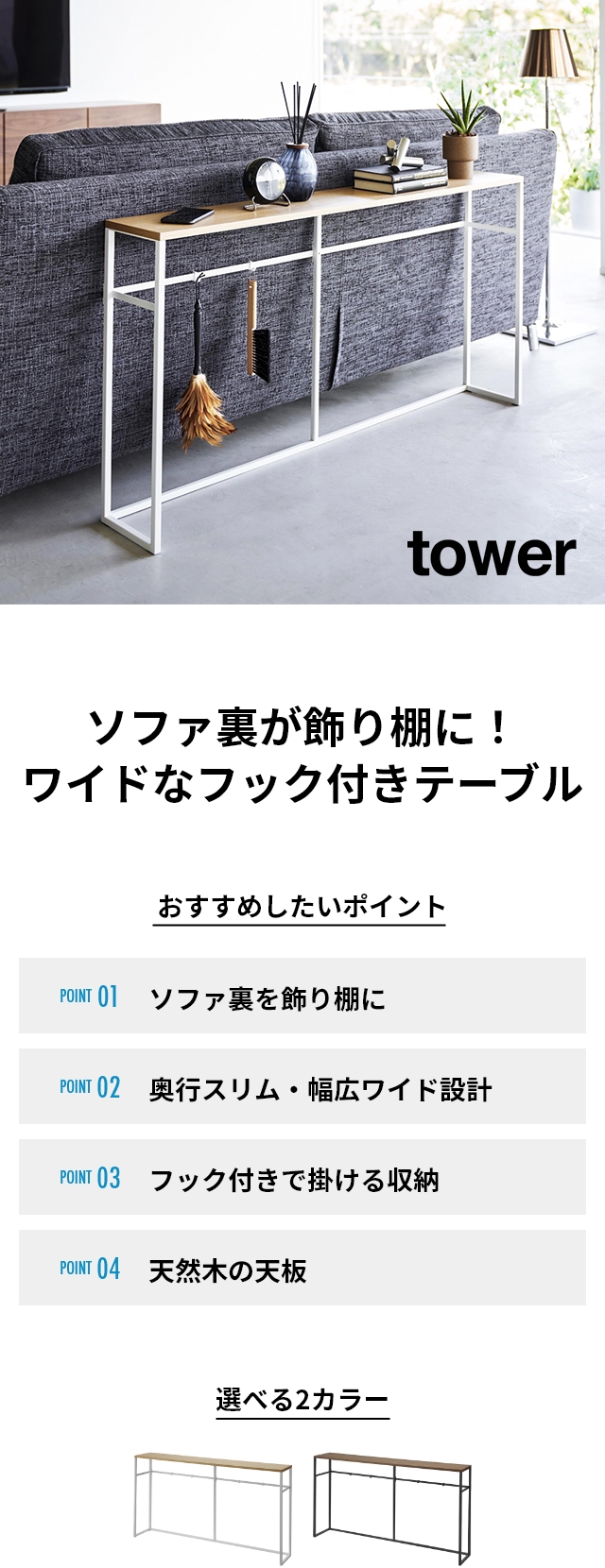 ソファー裏コンソールテーブル タワー山崎実業 tower ソファー 後ろ 収納 ソファ 裏 オープンラック リビング収納 棚 シェルフディスプレイラック 飾り棚 木製 テーブル 廊下 玄関収納 ラック スリム 北欧 おしゃれ シンプル yamazaki ホワイト ブラック 20262027。