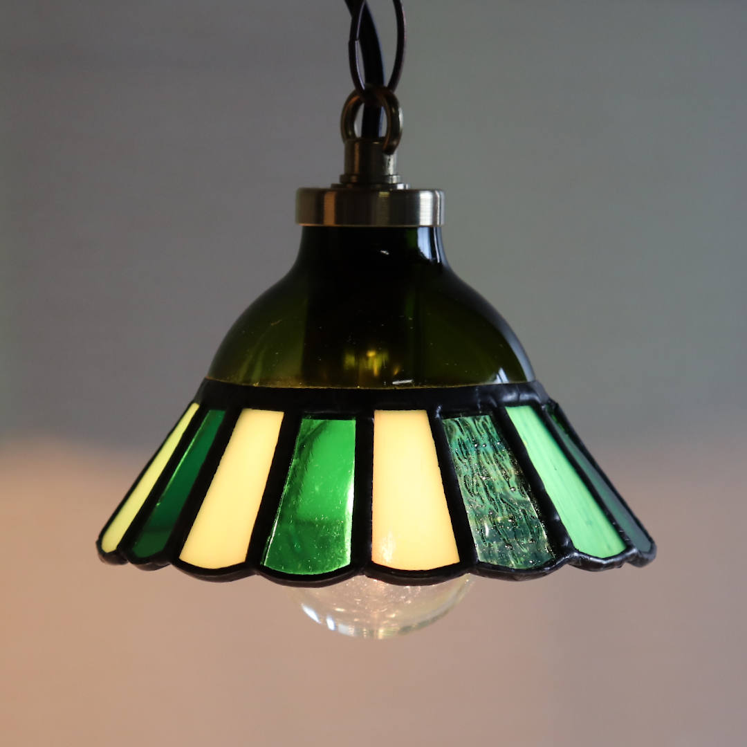 グリーンのフリルスカートのよう♪ステンドグラスシェードのペンダントライトセット 灯具AFC1-ST22-TG06A – アンティーク家具と雑貨の店ビクトリアンクラフト。