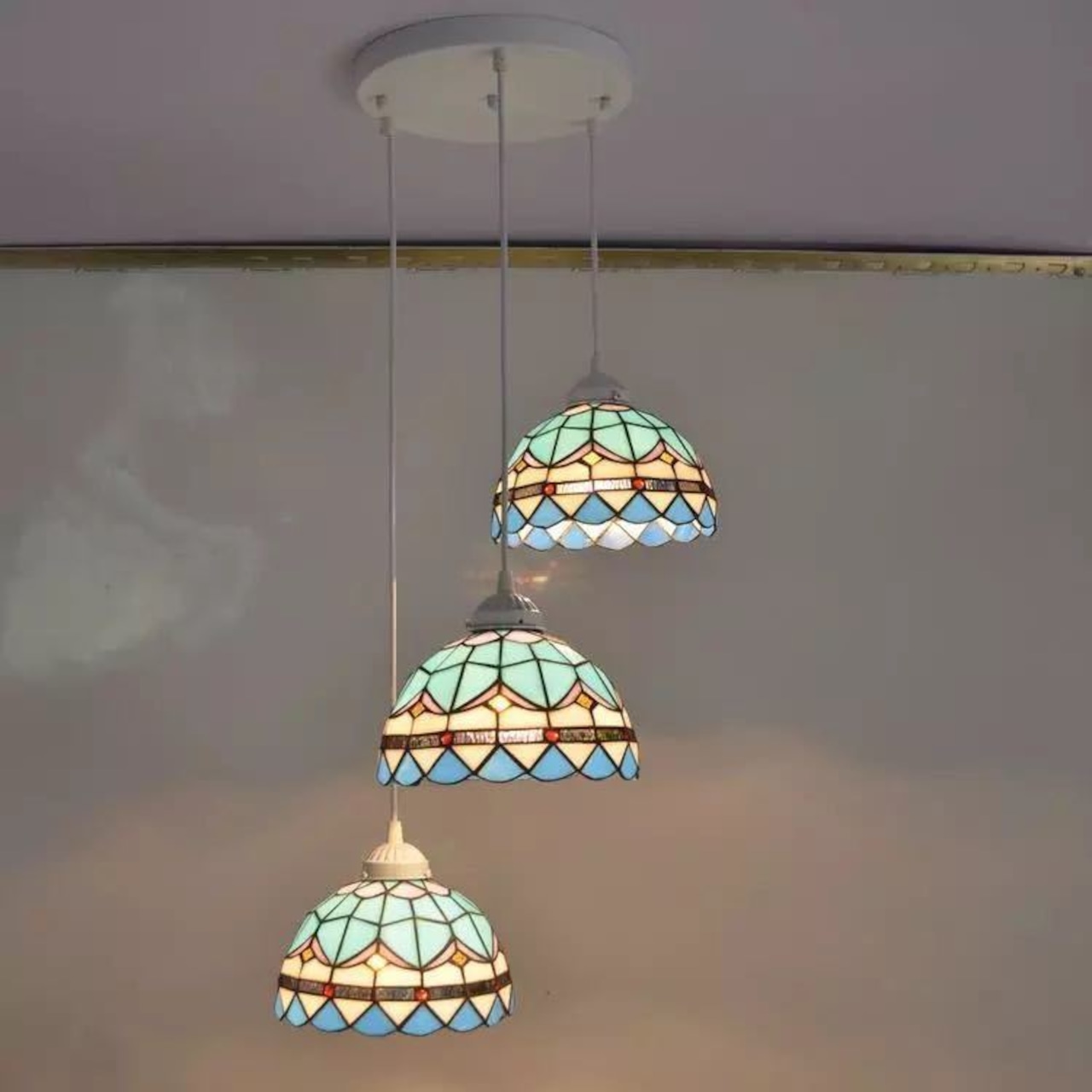 ペンダントライト ステンドグラス調 3灯式 E17 60Wクリアミニクリプトン球3つ付 ブルー シーリングライト 天井照明 リビング照明 ダイニングペンダントランプ おしゃれ アジアン エスニック リゾート 北欧 モロッカン92070バリ島直輸入!アジアン雑貨・家具の通販。