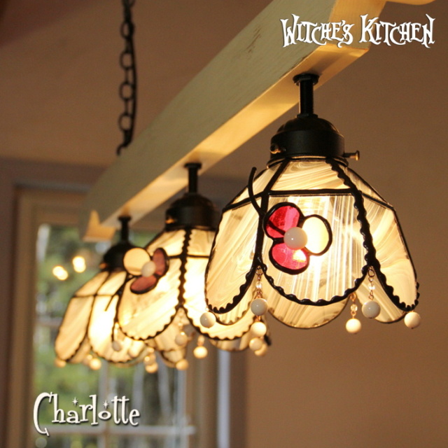 ステンドグラス 照明 ペンダントライトシャルロット 3Lights CharlotteLED対応 フラワー 3灯 ステンドグラス ランプ。