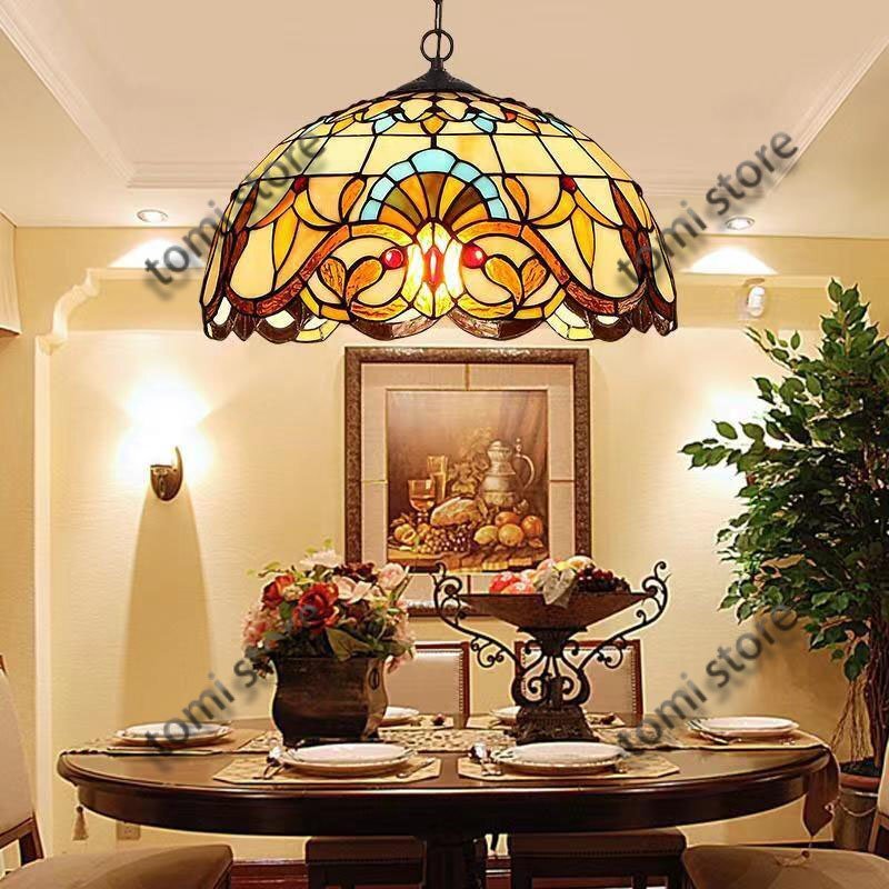 高級ステンドグラス.ペンダントライト豪華天井照明ステンドグラスランプガラス工芸品。