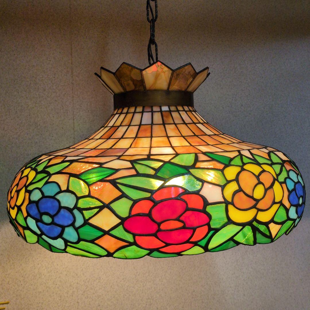 美品登場☆ステンドグラス.ペンダントライト豪華天井照明ステンドグラスランプ ガラス工芸。