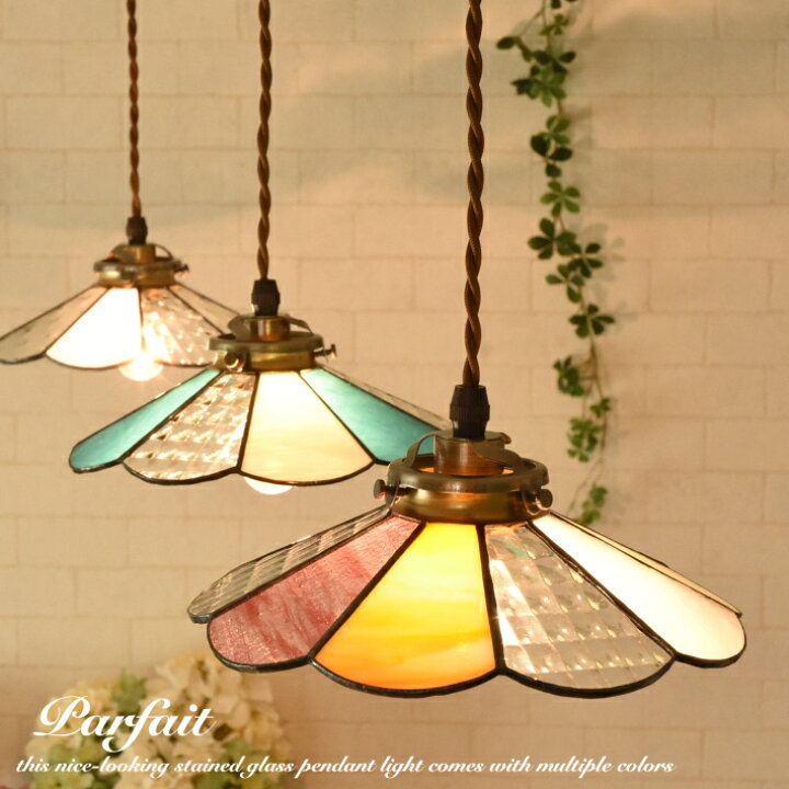 ペンダントライト ステンドグラス 国産 ガラス 北欧 アンティーク おしゃれ led対応 ダクトレール Parfait 1灯 リビング ダイニングキッチン かわいい レトロ 照明 シェード 天井照明 照明器具 トイレ 玄関 天井 シーリングライト 可愛い 国産 電気 ライト ランプ 手作り。