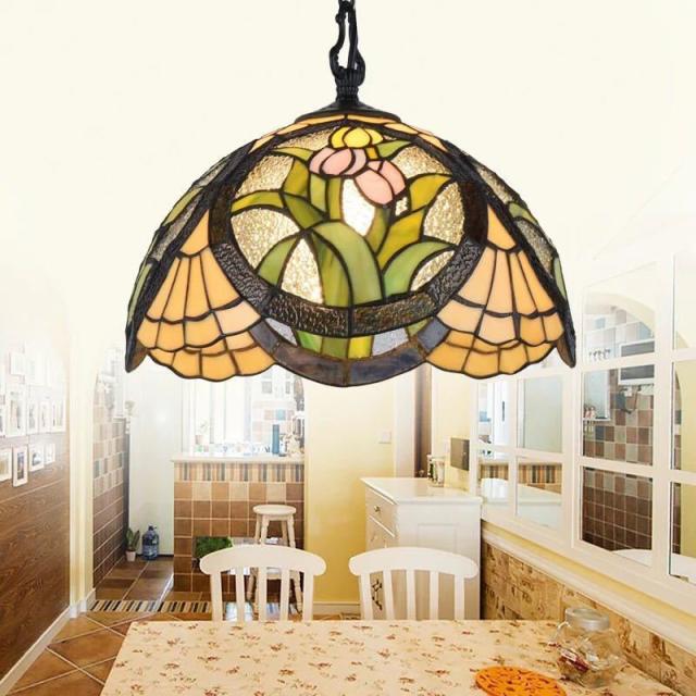 2P 特売!ヨーロッパ風レトロステンドランプ ペンダントライト ステンドグラス 照明 ティファニー 花柄 通路。