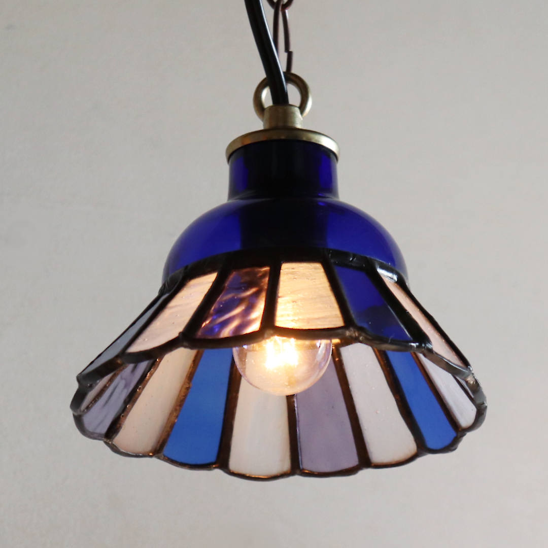 コバルトブルー・青系 ステンドグラスミニペンダントライト花型吊下げ照明・天井照明。