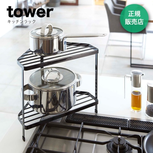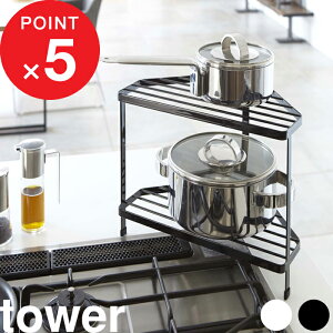 収納 ラック コンロ周り収納 YAMAZAKI 山崎実業 tower 排気口カバー上コンロコーナーラック タワー 2段。