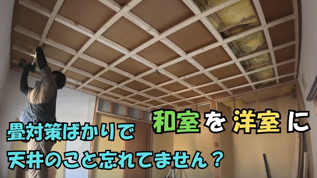 リノベーション 和室の洋室化〜天井編 板に直貼り?〜 1棟まるごとDIY- YouTube。