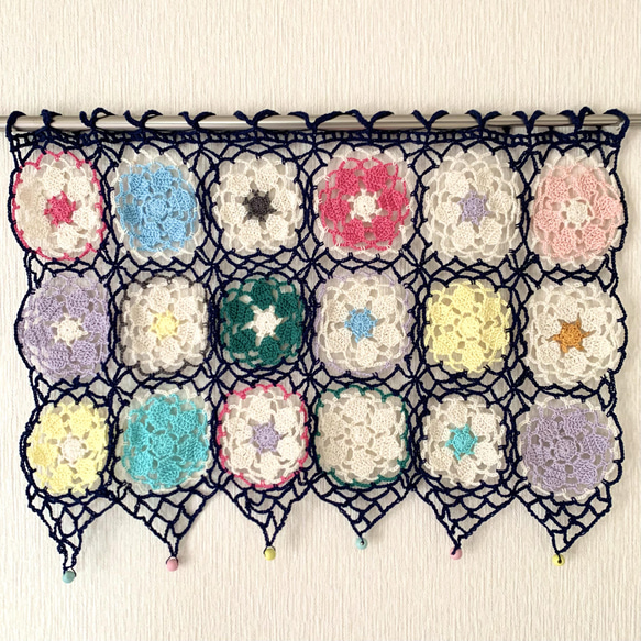 カフェカーテン コットン糸 モチーフ編み ガーランド かぎ針編み ウォールデコ カフェカーテン 壁飾り カーテン のれん カーテン Machikona通販 13560695Creema クリーマ。