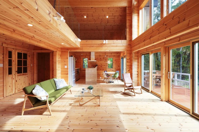 落ち着いた外観に開放感のあるインテリアが際立つ別荘ログハウス - 北欧 - リビング - 株式会社 TALOインターナショナルHouzzハウズ。