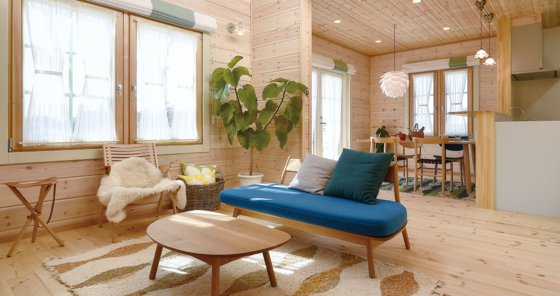 ログハウスの魅力を活かす内装高性能なデザイナー住宅を低価格で建てるならA-1home。