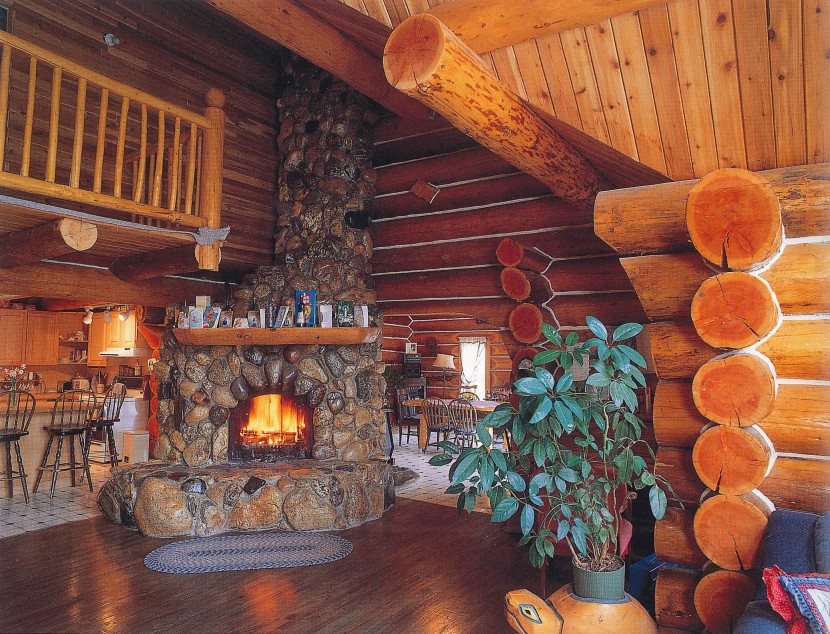ログハウスの暖炉特集 – ダブテイルログハウス編 パート1ハースストーンホーム。