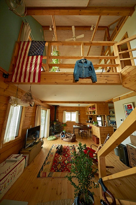 モダン家具と映画みたいな屋根裏部屋。 アウトドアも楽しめる庭つきログハウスの暮らし。家づくりの方程式Dolive ドライブ。