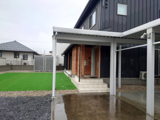カーポートを玄関まで延長しました!押田屋越前市窓・玄関ドア・エクステリアリフォームのプロショップ。