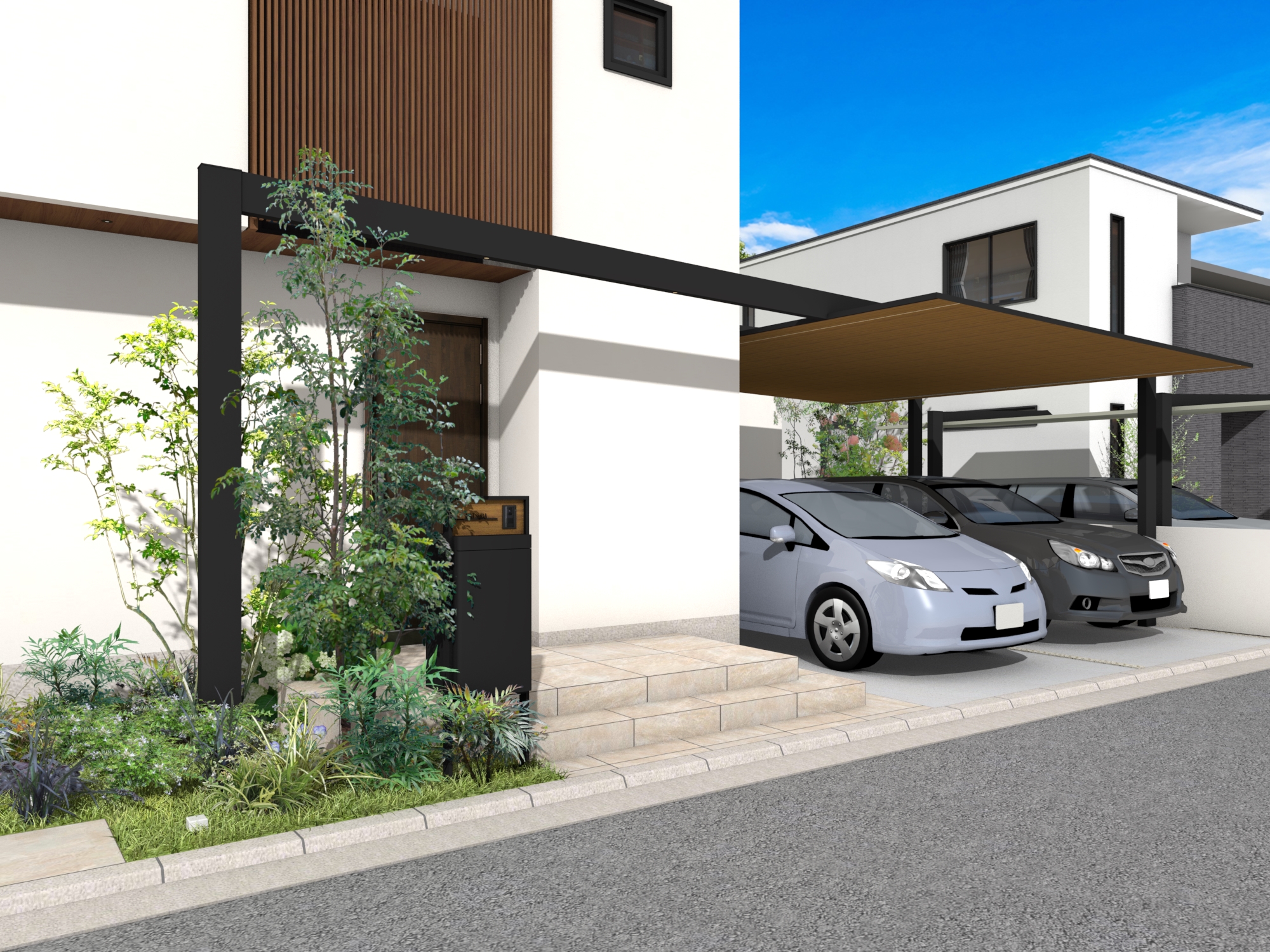 ファサード空間を印象的に、カーポート SC でつくるエントランスゲートエクスプラット - エクステリア&ガーデンデザイン・プラン検索サイトRIKCADデータ無料配信。